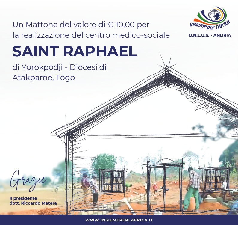 Per sostenere il progetto, l’associazione ha avviato la campagna dei “mattoni solidali”: un’attestazione simbolica del valore di 10 euro che consentirà, tramite una donazione, di contribuire concretamente alla costruzione del Centro “Saint Raphael”.